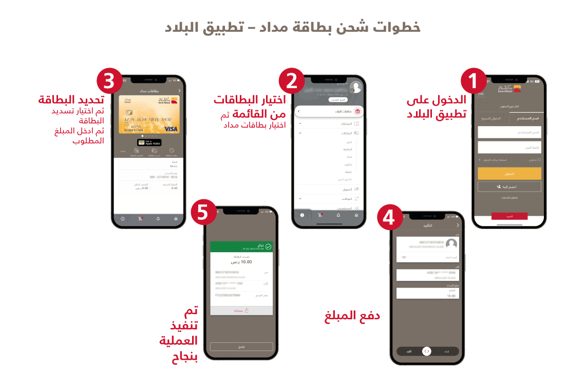 شحن البطاقة عبر تطبيق البلاد